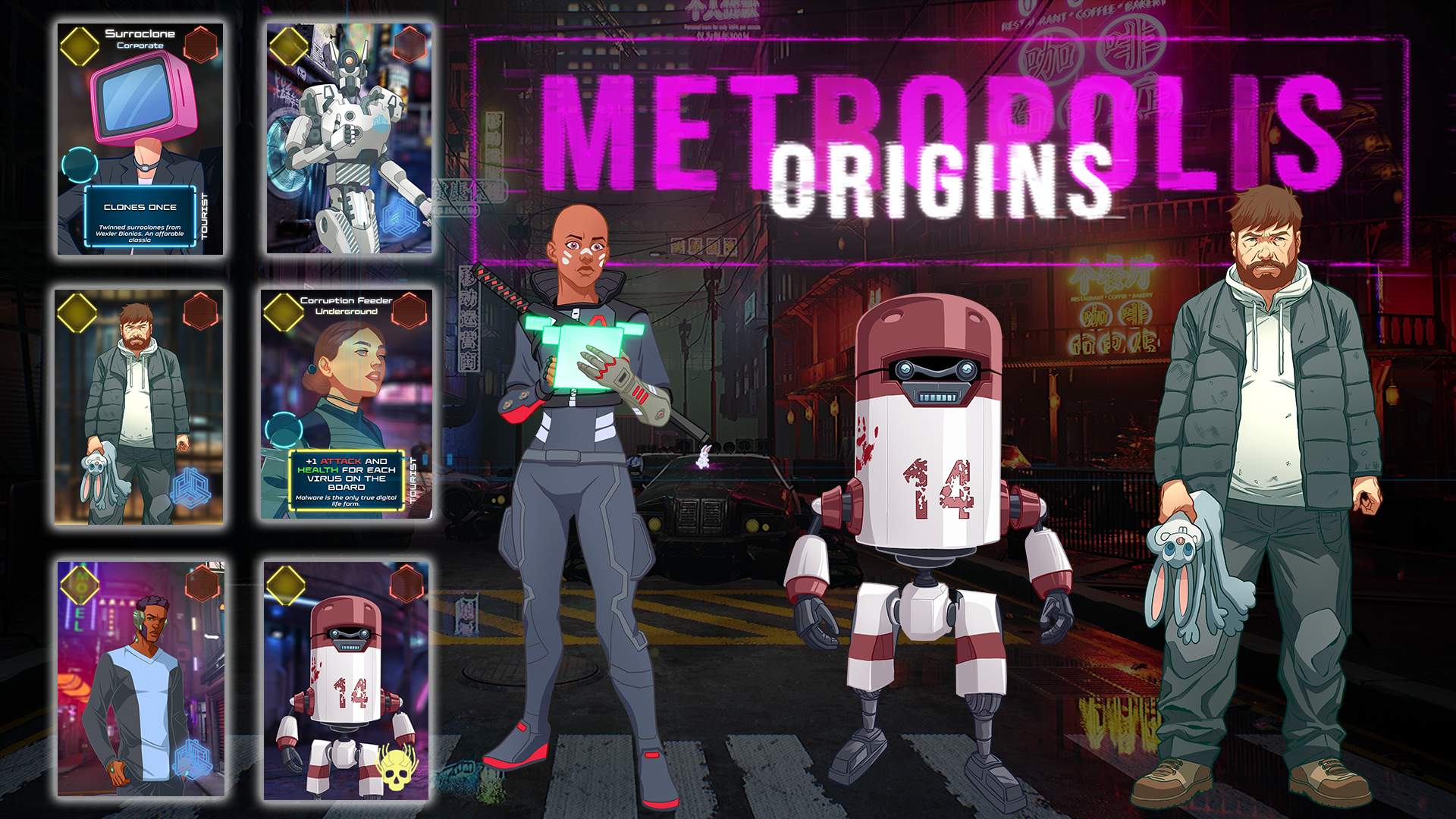Metropolis Origins: A strategic cyberpunk card game with unique NFTs. Outwit rivals, own digital cards, and shape the Metropolis universe. Become a citizen today!